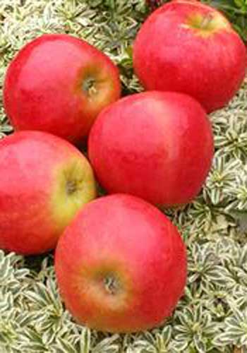 Frugten: Middelstor, rund og rød Fint spiseæble, med fin aroma Plukkes i oktober, kan gemmes