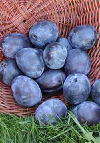 Frugten: Middel, oval, blåsort m. meget fast