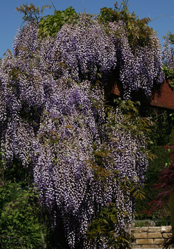 Hvis blåregnen skal gro i en pergola, skal man selvfølgelig lade topskuddet vokse til pergolaens højde, inden man klipper (sideskud afkortes til 10-15 cm)